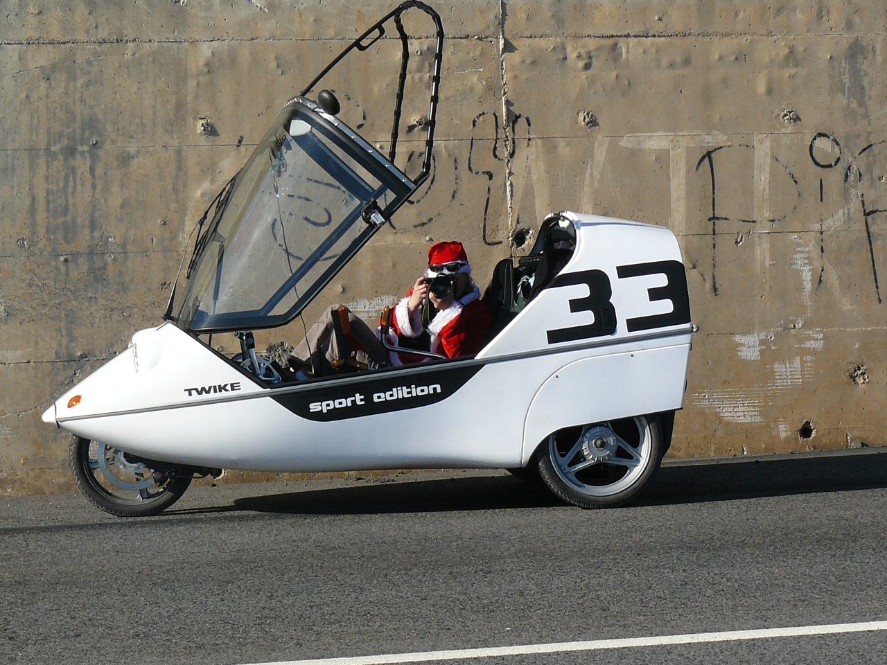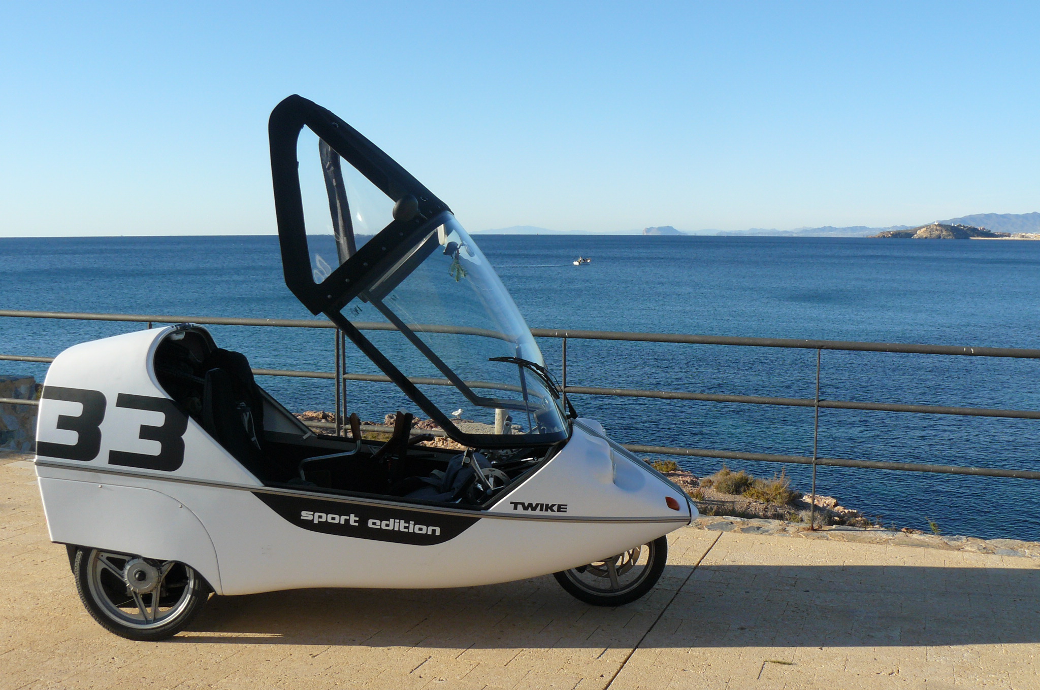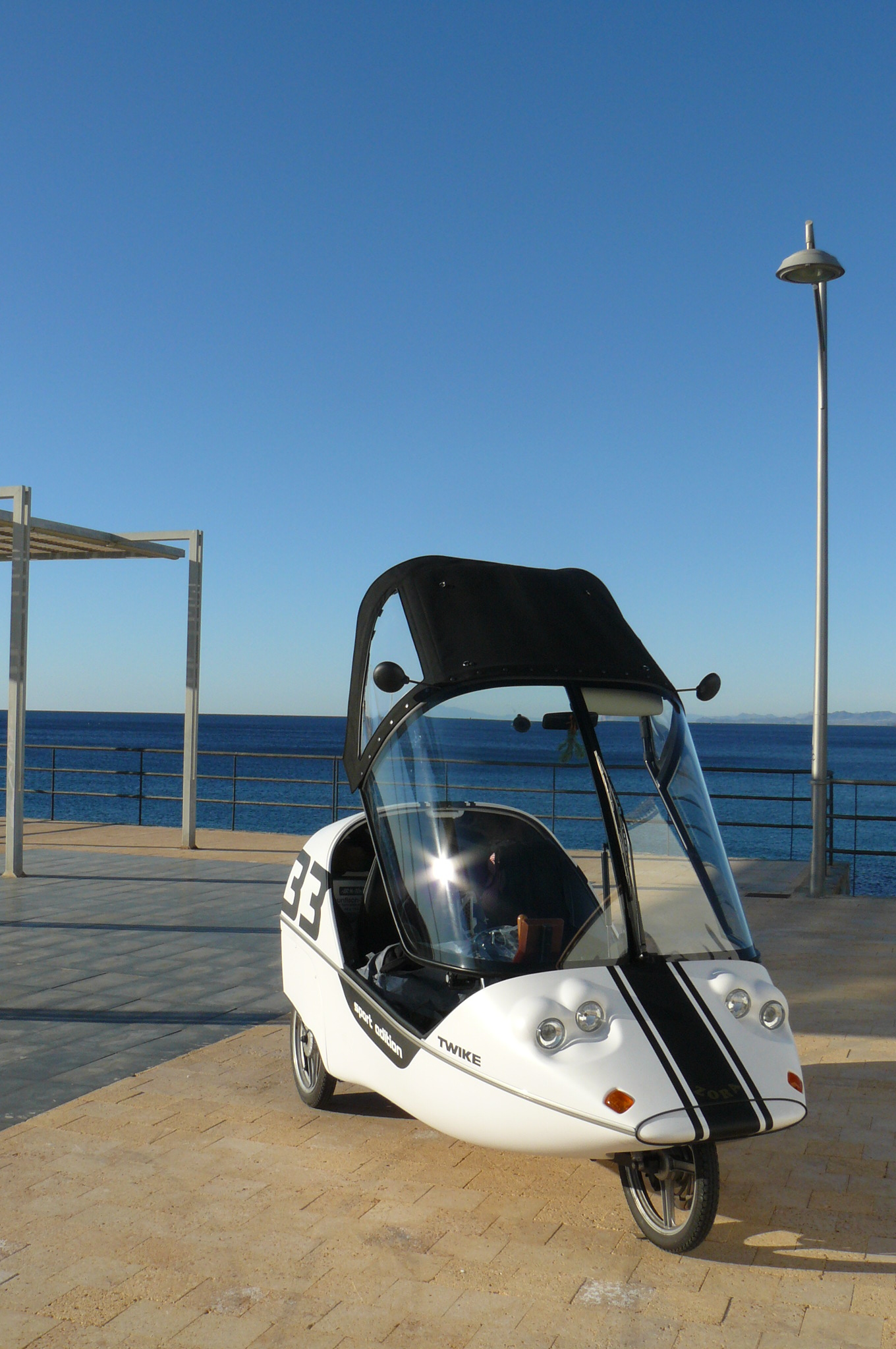 Ich fuhr von der Autobahn ab. Eine Tankstelle mit Aussensteckdose musste her…in der nächsten Ortschaft erschien eine…und glech mit zwei Steckdosen!!! Ich war in der Zwischenzeit auf 0km to go jedoch noch mit 330V unterwegs…eine Absage!!!! Denn an den Steckdosen hingen kleine Weihnachstsbeleuchtungen…..um halb 3 Uhr morgens….etwas schockiert wegen dem Missverständniss meiner Notlage blickte ich zu Barbara….welche friedlich im Twike schlief….in dem Moment kam der Parkplatzwächter, erkannte die Lage und nahm mich kurzentschlossen mit zu einem LKWstromstecker auf seinem Parkplatz….wir kamen hierbei zu 3h Schlaf und pünktlich nach der Volladung fuhr ich dem Sonnenaufgang in Cartagena entgegen.