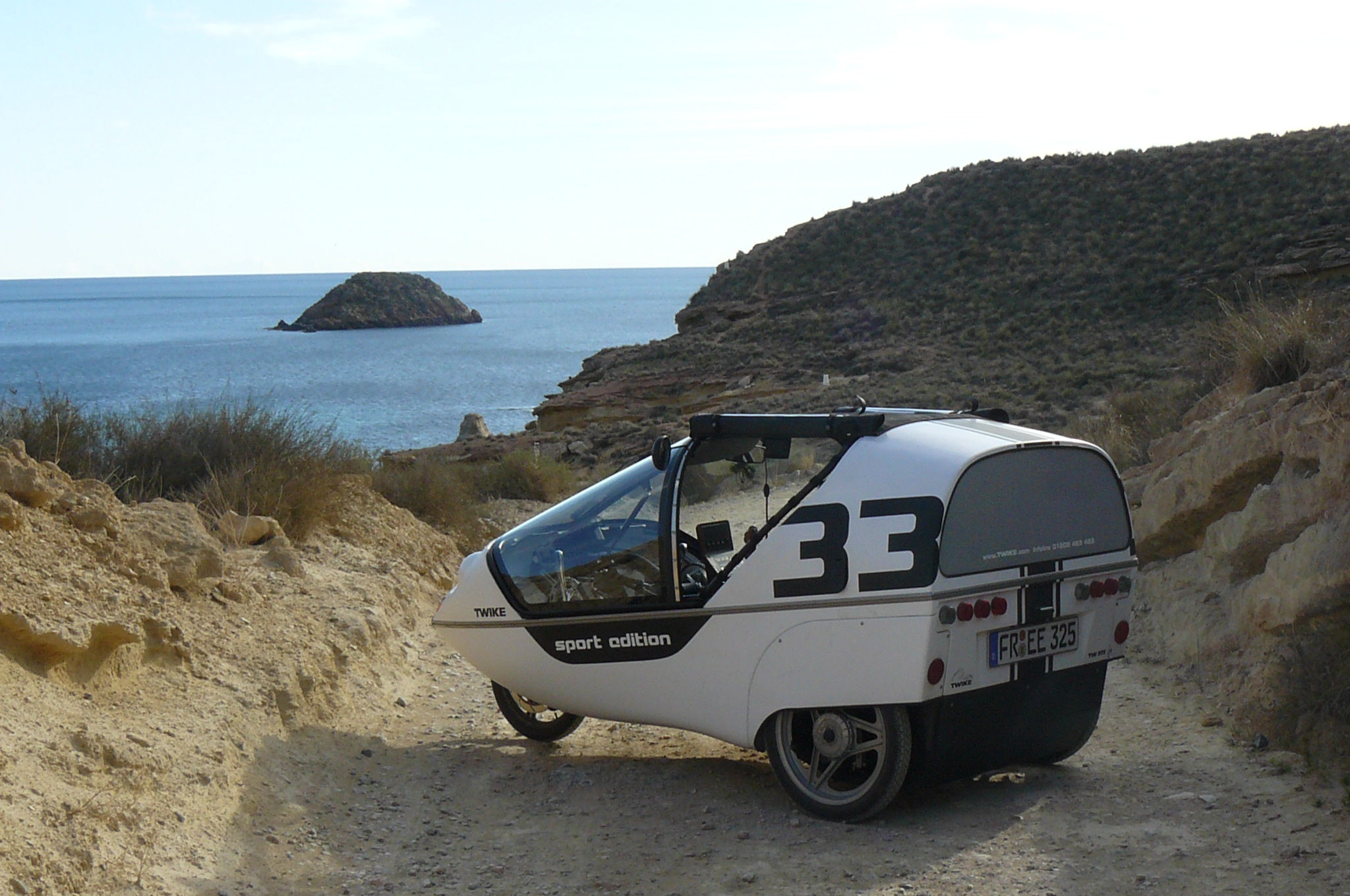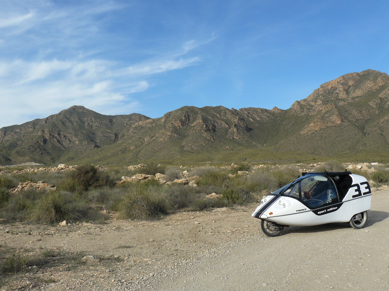 Wir waren sehr ereleichtert als wir wieder auf eine geteerte Strasse kamen….etwas später als geplant erreichten wir Almeria, wo wir ein kleines nettes Hostel fanden, inklusive Twikegaragenplatz mit Steckdose.