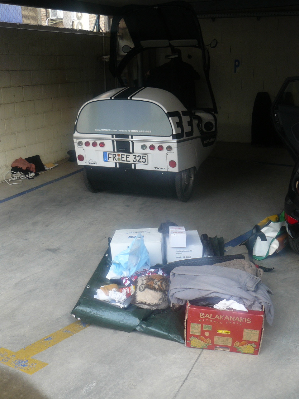 Wir fanden eine sehr schöne Lademöglichkeit nach einer unmöglichen Abweisung. Mit noch sehr wenigen mir vorhandenen Kilometern fuhr ich von der Autobahn ab und in das nächste Dorf. Eine Tankstelle….juhuuu….eine Steckdose, noch besser. Zu früh gefreut…eine Abweisung…das Laden eines Elektroautos würde nicht zum Tankstellenservice dazugehören…ich erklärte ihr, dass das Twike nur zwischen 4-6kw/h an Strom zieht, für die ich selbstverständlich bezahlen würde. Nichts zu machen. Ich bat sie daraufhin, bei ihrem Kollegen nachzufragen. Darauf hin ging sie in einen Nebenraum, um mir anschliessend zu sagen, dass die Steckdose nicht funktioneren würde….hhhhhh, eine schlechtere Schauspielerin gibt es wohl nicht….hatte sie tatsächlich die Steckdose abgestellt
