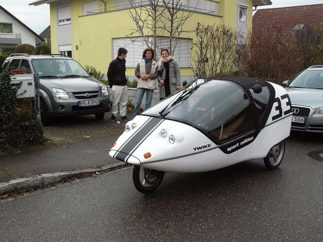 Ja, das Twike wurde gestern das erste Mal von Family begutachtet…allgemeines Statement war, dass das Auto zu mir passen würde. Mein Bruder erhielt eine Rundfahrt und konnte es sich nicht nehmen lassen, es auch gleich auszuprobieren:-)