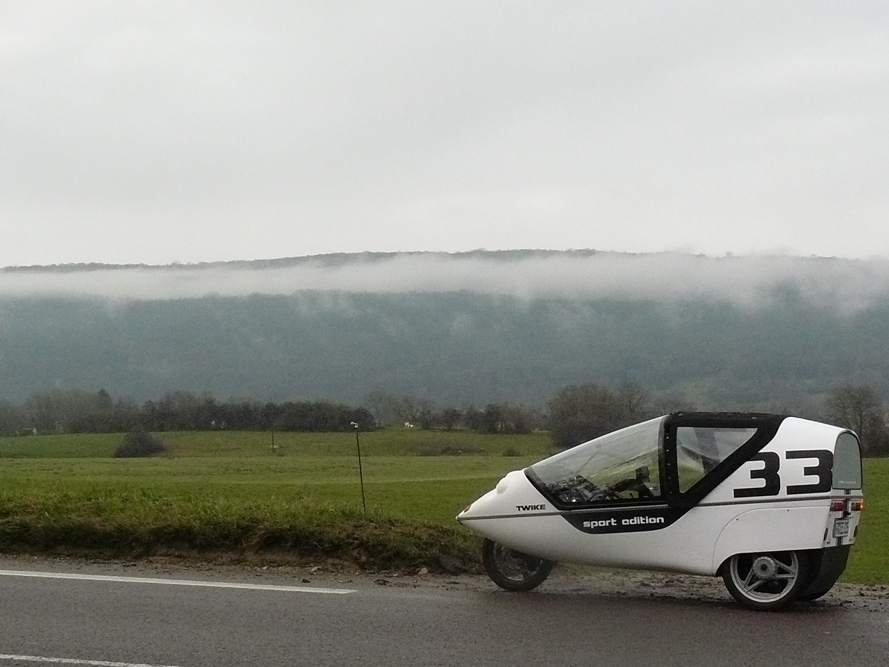 Bis 9 Uhr geschlafen…..doch das war der Erkältungsschlaf!!! Um 10 Uhr war ich auf der STrasse….ohne Regen, juhuuu. Heute sind es „nur“ 220km to twike….bis Lyon…..aber der Nebel fing schon kurz nach Abfahrt an: