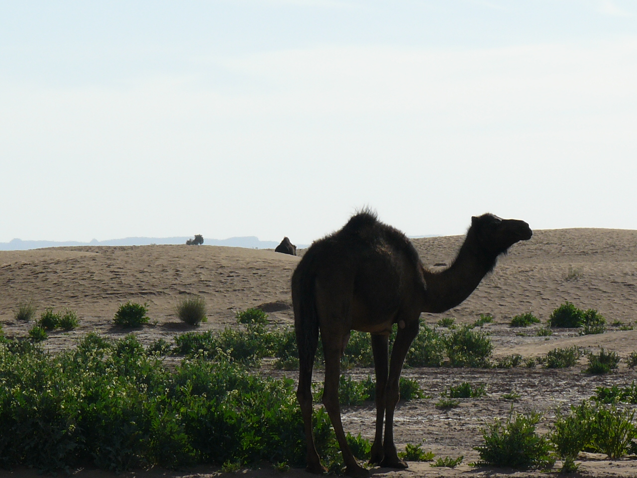 Es scheint heutzutage auch die Eile in die Sahara eingetroffen zu sein…armes Kamel, mit Tempo 80 quer durch die Sahara wahrscheinlich Richtung Schlachthof chauffiert….das hat bestimmt einige blaue Flecken erhalten…