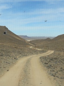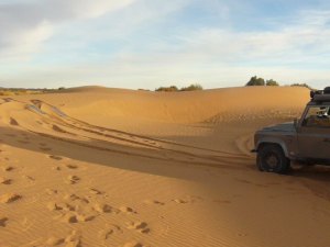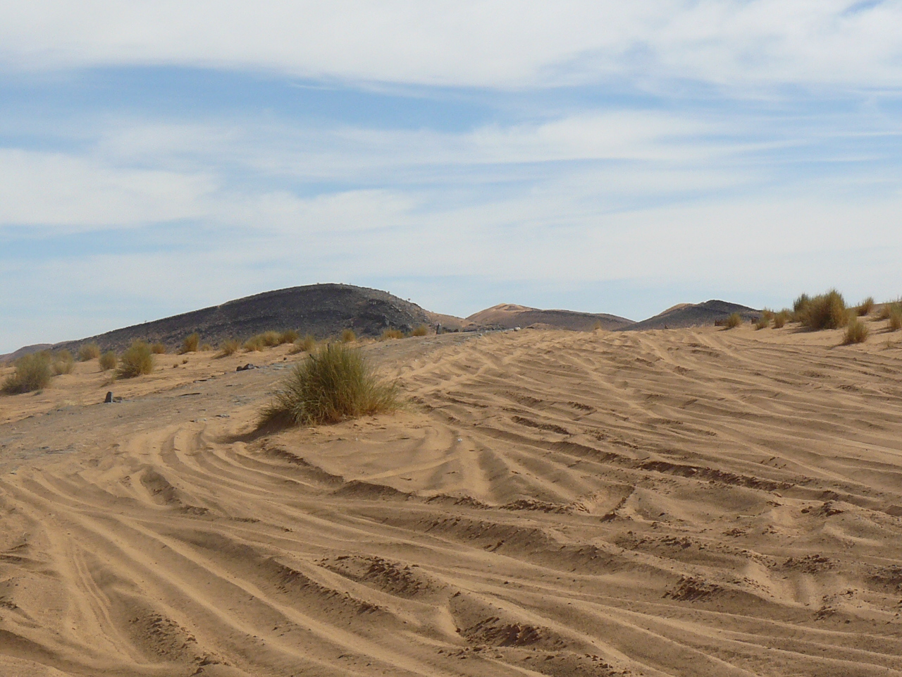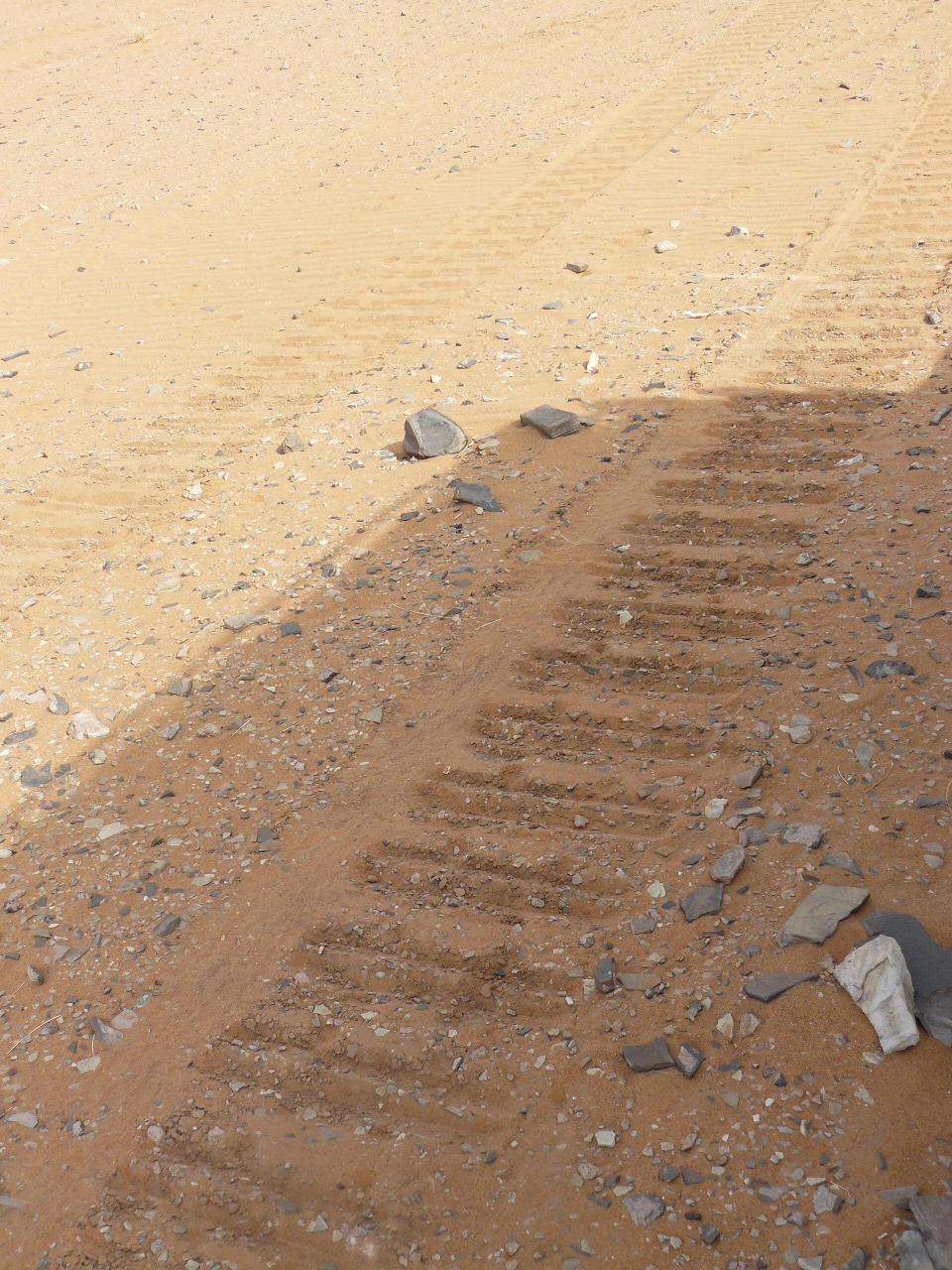 Panzerspuren? Obwohl wir fast immer direkt an der algerischen Grenze entlang fuhren (Paris-Dakar-Piste), nach GPS uns sogar teilweise in Algerien aufhielten!, sahen wir eigentlich fast nie Militär:
