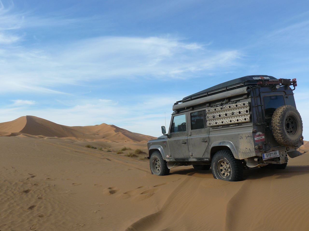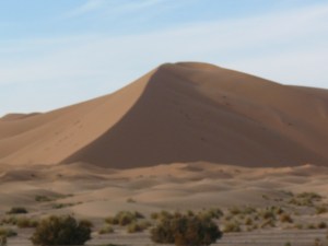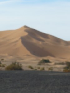 Endlich erreicht: Den berühmten Erg Chebbi, der auf keiner Postkarte aus Marokko fehlen darf…..Marokko, wie es sich der Europäer vorstellt: