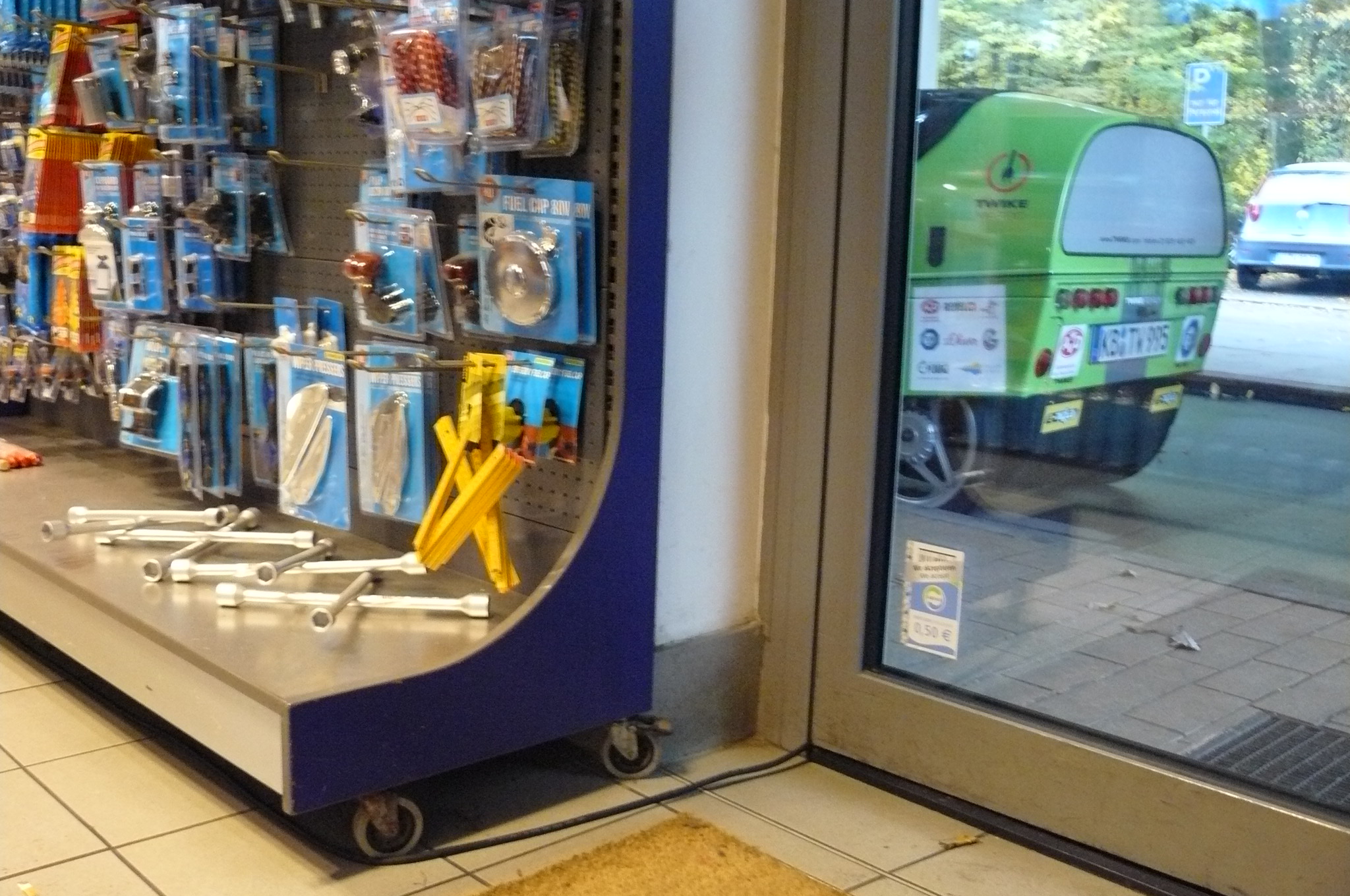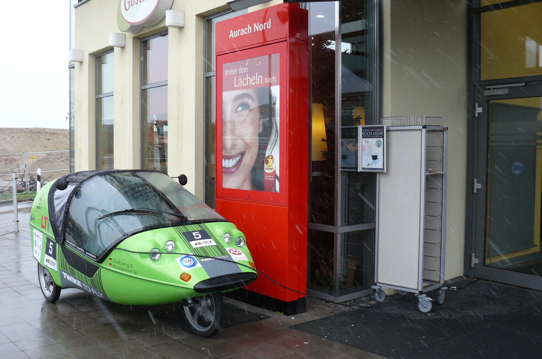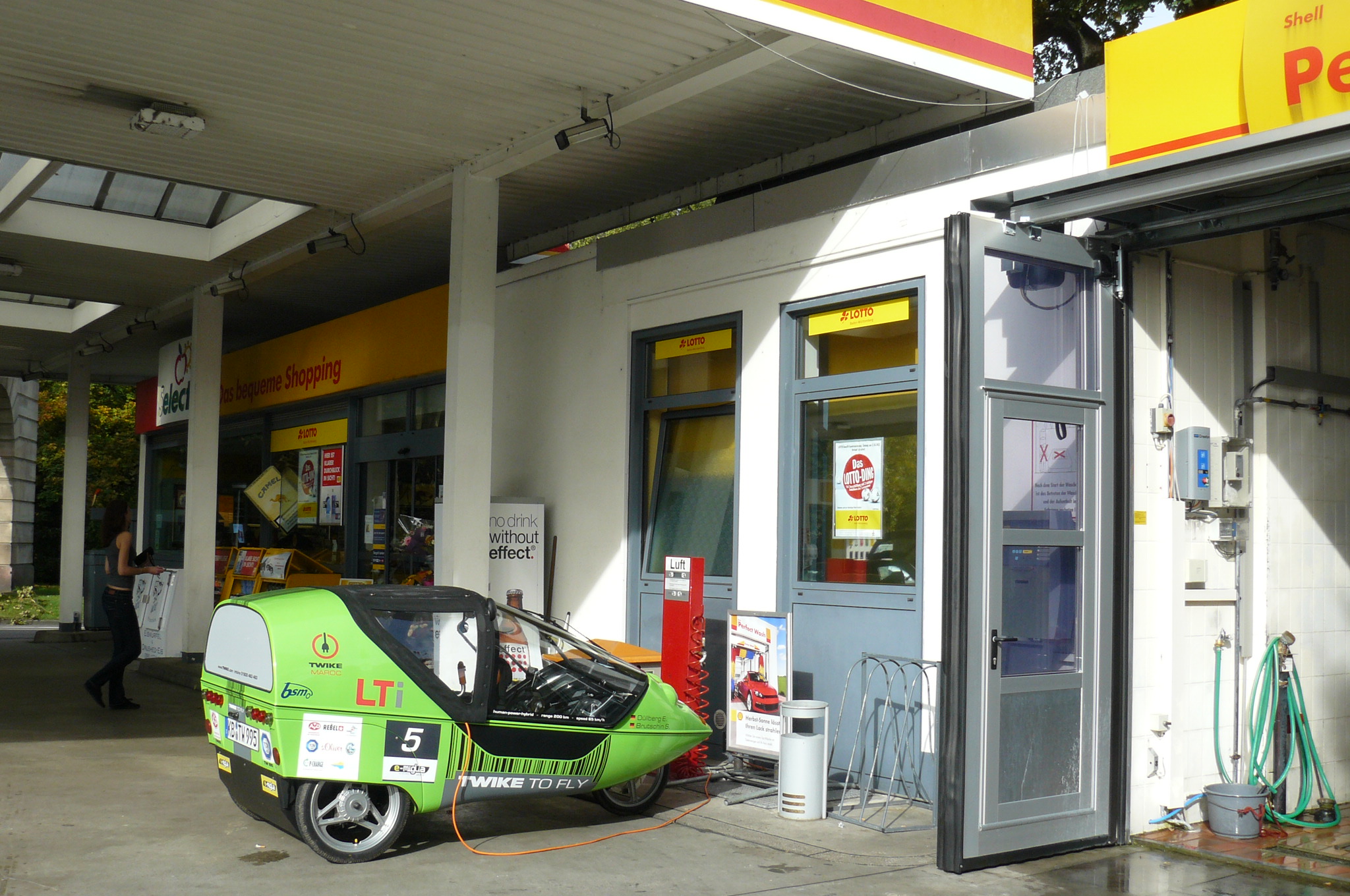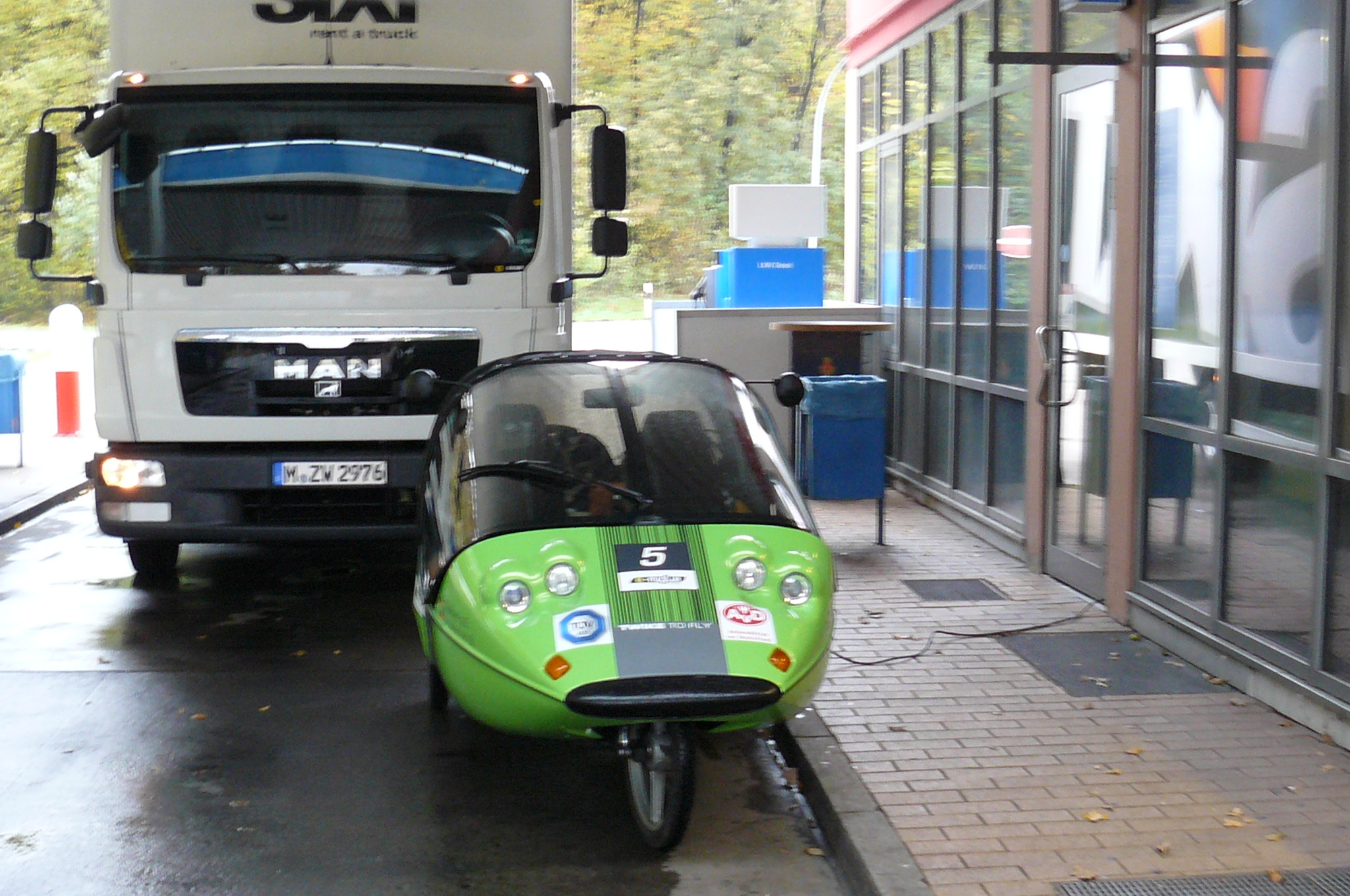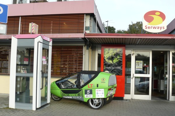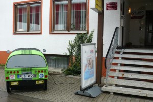 Ein TWIKE findet überall eine Lademöglichkeit. Manchmal auch an Autobahnraststätten, wo keine Aussensteckdosen installiert sind. Dann hängt der Ladeerfolg von offenen Mitarbeiten und Betriebsleitern ab, so wie gerade geschehen bei der Autobahnraststätte Fürholzen (zwischen München und Ingolstadt).