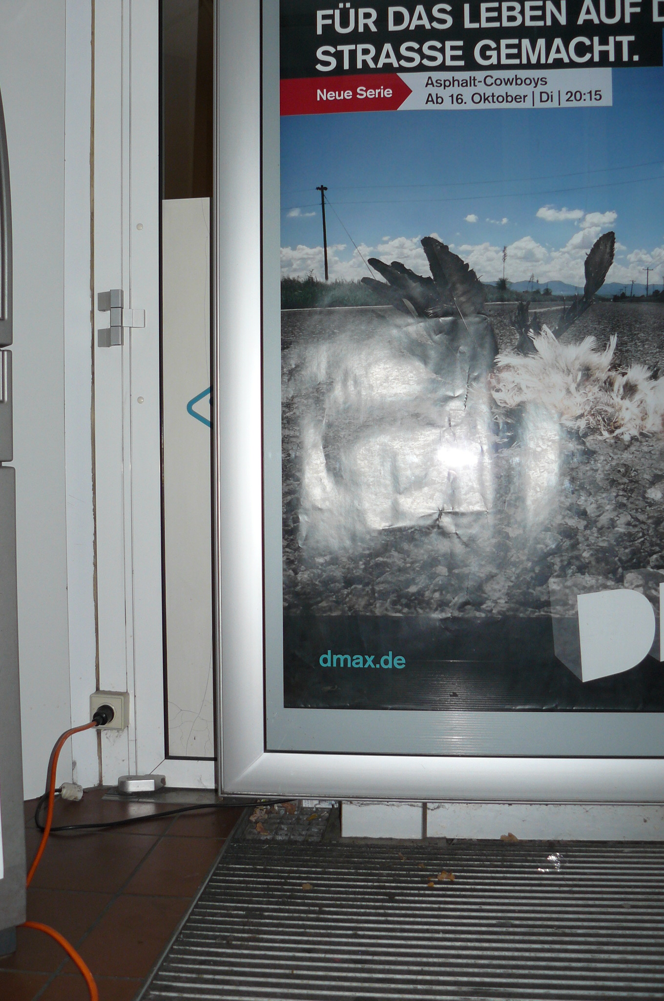 Nach höflichem Nachfragen wurde es mir erlaubt ein beleuchtetes Werbeplakat auszustecken: