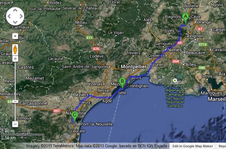 Dies ist ein Bild für 18.07.2013: Tag 4: Laudun – Sète – Sigean: 225km.