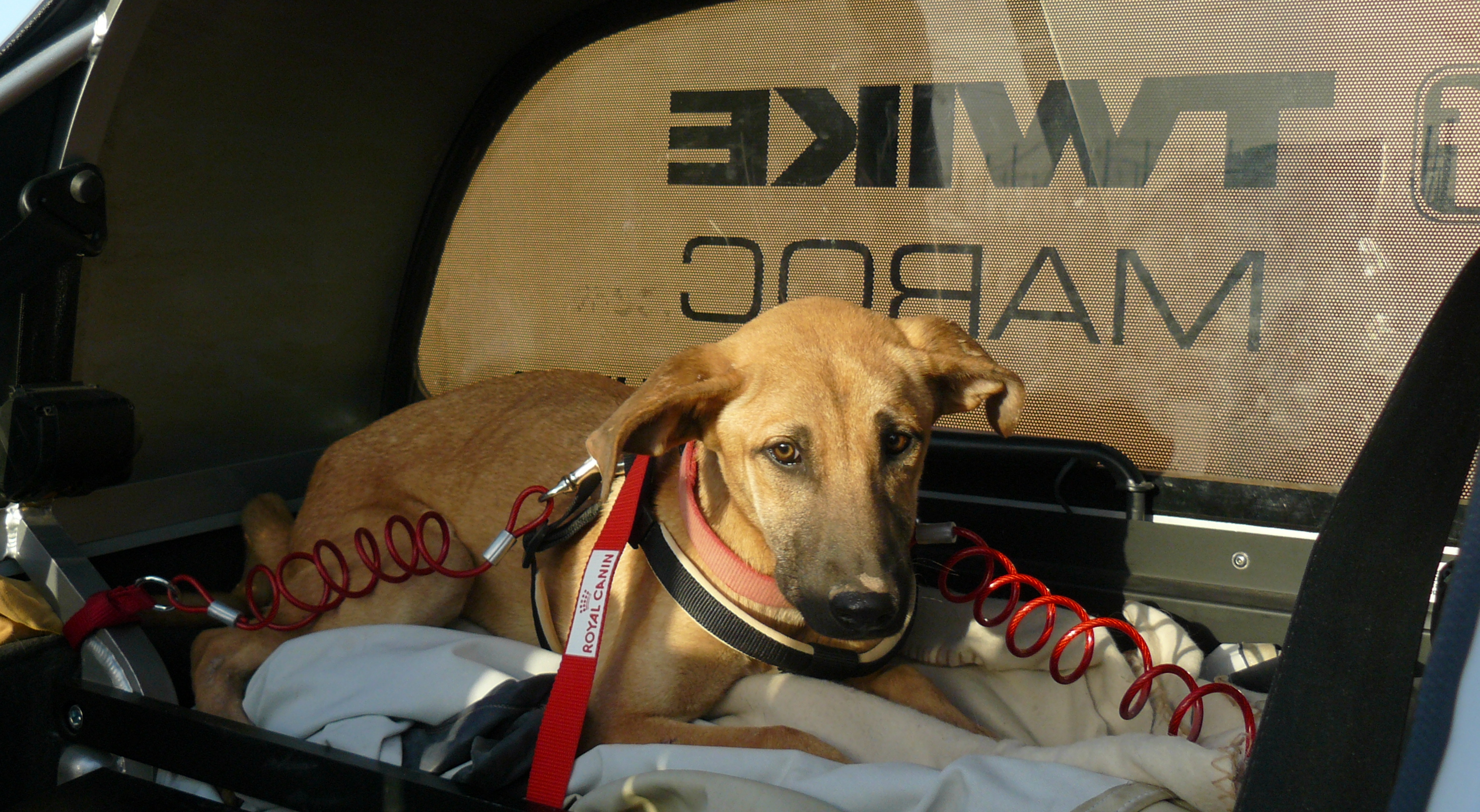 Heute ist Impftag für Dalmatinerpfote. Als erstes wird Bayda ins TWIKE gelegt. Sie macht sich gleich über den gesamten Kofferraumbereich breit. Aha, was für ein Zeichen! Trotzdem wird Dalmatinerpfote zu ihr nach hinten gelegt. Wir versuchen loszufahren. Es klappt nicht. Dalmatinerpfote macht ein Riesentheater und meine Kraft als Beifahrerin reicht nicht aus, sie davon abzuhalten ihre Nase zu weit nach vorne zu stecken. Wir machen kurzen Prozess. Bayda bleibt zuHause und Dalmatinerpfote wird von zwei Seiten im TWIKE festgemacht. Los geht’s!