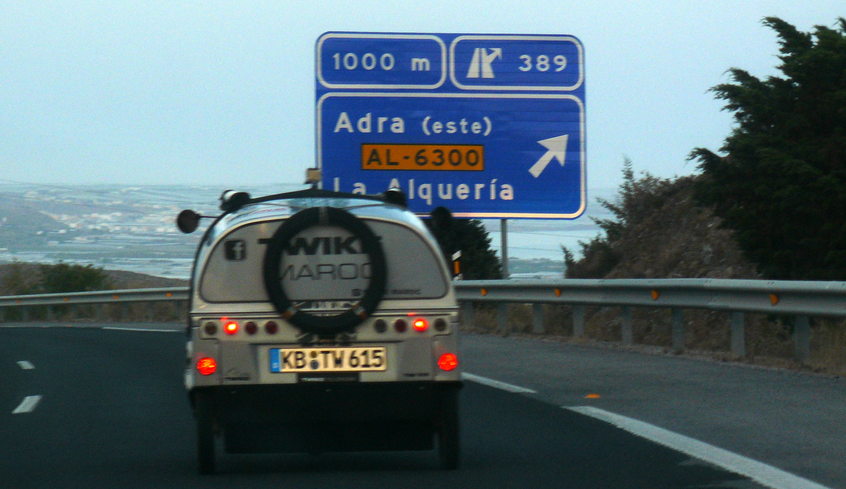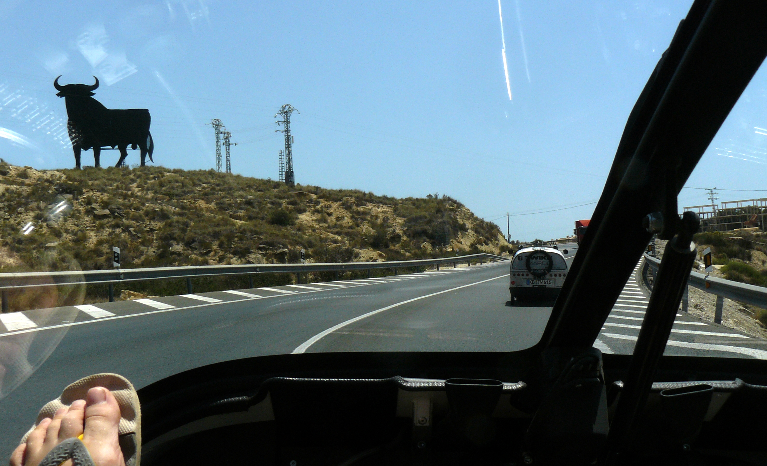 Wir erreichen Spanien. Beide Hunde sind gechipt und geimpft. Ich halte alle Unterlagen parat. Wir werden durchgewunken!!! Bevor ich es überhaupt verstanden habe befinde ich mich bereits auf der Nationalstraße Richtung Malaga. Wie, das war es jetzt? Nicht einer hat unsere Hunde überprüft? Ich bin nicht ganz einverstanden, da erst vor drei Monaten ein nach Deutschland eingeführter marokkanischer Hund mit Tollwut entdeckt wurde. Na ja, ich versuche es optimistisch zu sehen, wenigstens müssen wir und die Hunde nicht noch länger als notwendig am Hafen verweilen.