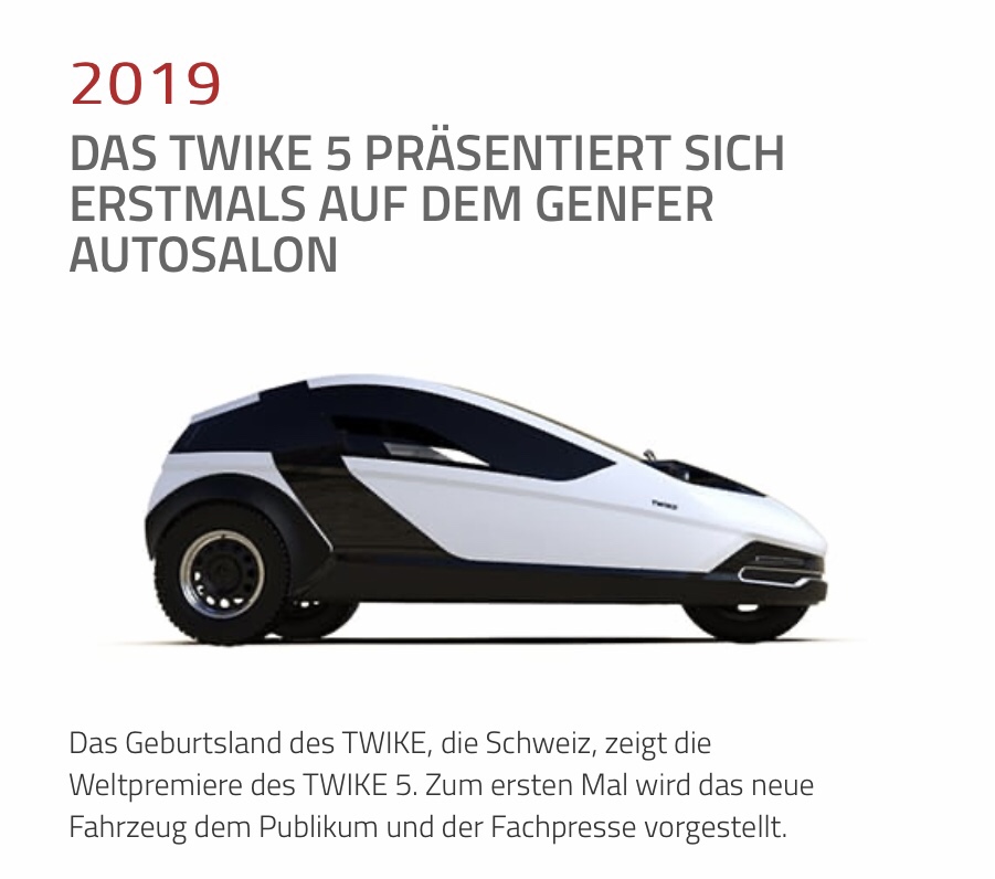 Nach knapp einem Jahr hat der Zähler auf der Webseite 2 Mio erreicht. Doch es kam dennoch nicht zu einem geplanten Serienstart. Warum eigentlich nicht? Das ist weiterhin eines von vielen Fragezeichen. Doch mit den eingesammelten 2 Mio Euro konnte jedenfalls ein gewisser Zeitraum überbrückt werden und bereits in 2019 ein nicht fahrbarer Prototyp bei der Genfer Automobilmesse demonstriert werden. Doch das ausgestellte Fahrzeug zeigte nicht seine Wirkung. Fahrzeugreservierungen blieben aus. Es wurden nicht die gehofften unverbindlichen 500 Reservierungen erreicht. Dennoch liest sich die bis heute noch auf der Webseite geführte Schlagzeile „TWIKE 5 präsentiert sich erstmals auf dem Genfer Autosalon“ bis zum heutigen Tag gut. Doch wer sich weiter informiert, sieht schnell, dass es eben nur eine nicht fahrbare Karosserie war und nicht das Fahrzeug, welches schick als Rendering bis zum heutigen Tage auf der Webseite dargestellt ist.