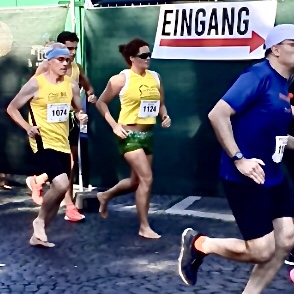 Jährlich mit dabei ist ebenfalls das Barfussteam der Laufschule Marburg. Dieses Jahr waren vier Barfussläufer auf den Distanzen 5 und 10 km unterwegs.