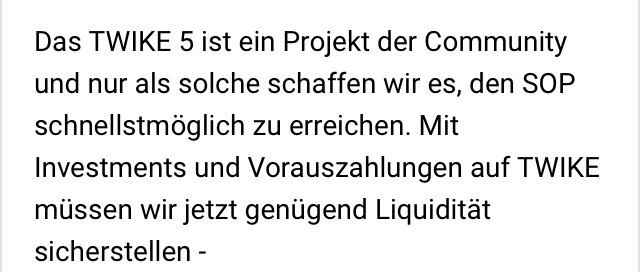 Ähnliche Gedanken gab es schon mehrfach in der TWIKE 5 Community WhatsApp Gruppe. Doch fast alle sind sich hier einig: Noch möchte man an der SOP Idee festhalten.