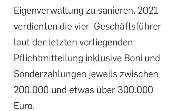 Das ist die eine erschreckende Nachricht. Noch noch mehr trifft mich die Nachricht von einem Jahresgehalt von 300.000 Euro.