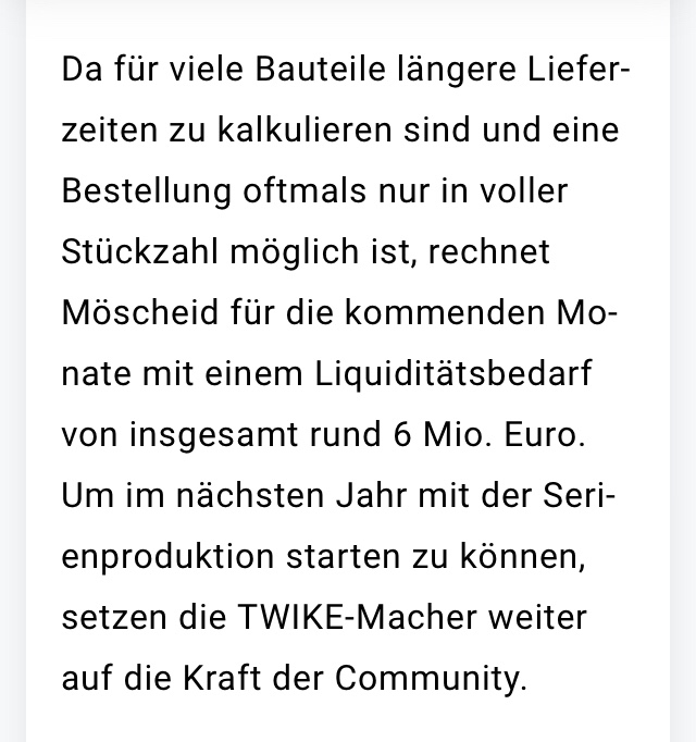 Kurzum diese Neuigkeiten war heute die Basis für einige Diskussionen in der TWIKE Community Gruppe.