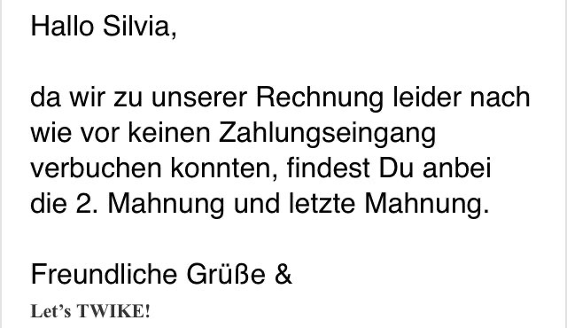 Doch dann gab es tatsächlich noch eine zweite Mahnung.