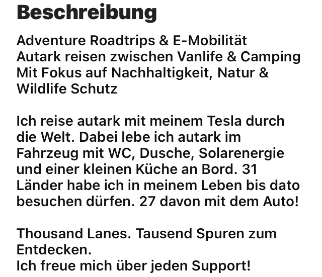 Kerstin von @thousandlanes.de berichtet nicht nur ausführlich über Ihre Reisen auf YouTube, sondern berichtet auch über nützliche Utensilien oder zeigt auch per Video, dass es auch durchaus Frauen gelingen kann einen Reifen zu wechseln.
