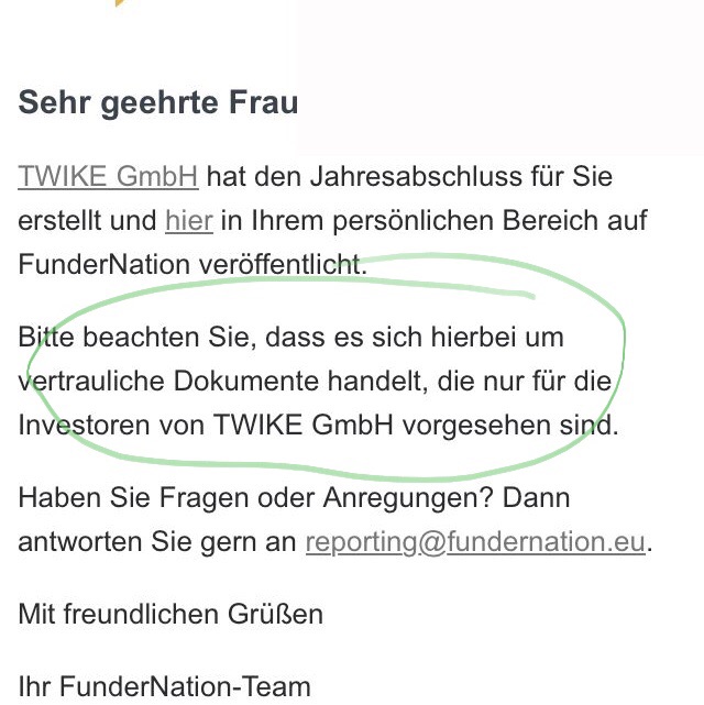 Kurzum, die TWIKE GmbH liest meinen Blog mit. Hier hatte ich ebenfalls mal einen Artikel geschrieben, dass ich es nicht gerecht finde, dass Personen, welche bereits mehr als 100 Euro investiert haben, keinen Zugriff zu diesen relevanten Informationen wie Jahresabschlüsse als auch Quartalsberichte hat.