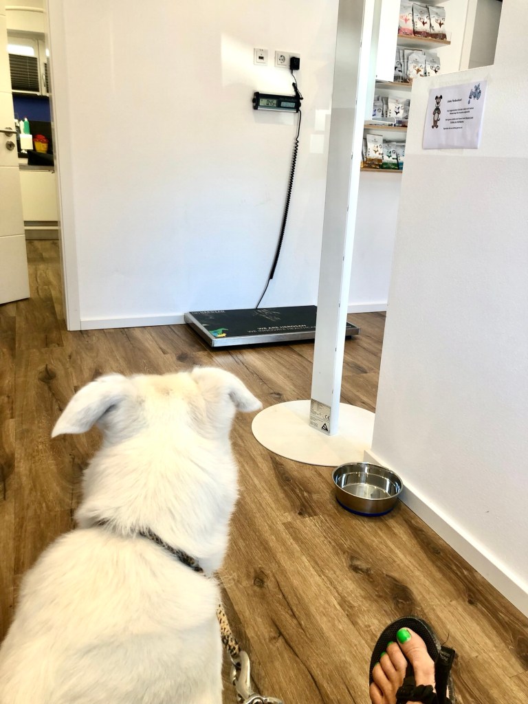 Am Liebsten würde er sofort wieder rauslaufen. Der Adrenalinpegel steigt … Tierärzte bedeuten nicht immer etwas angenehmes.