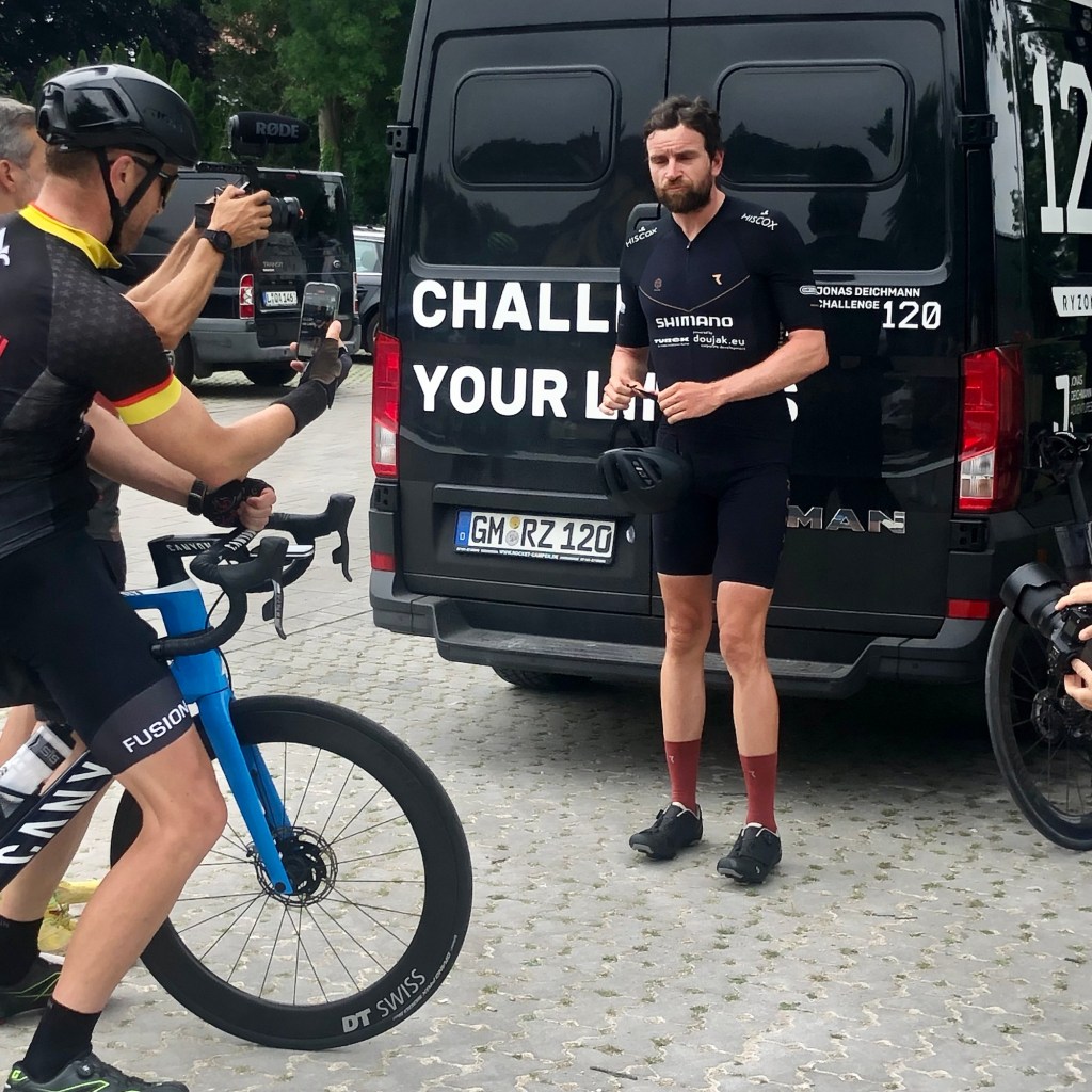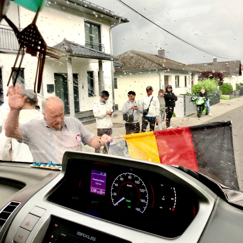Die Stimmung war sehr gut. Sämtliche Bewohner haben auf dem Gehweg mit vielen Laternen Platz genommen und feuern uns an.