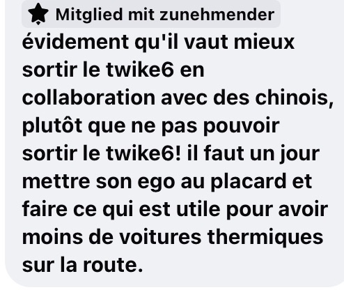 Keine einfache Entscheidung. Was wäre Deine Meinung hierzu? Wenn es dem Projekt TWIKE zum Überleben helfen würde, Kooperation mit China?