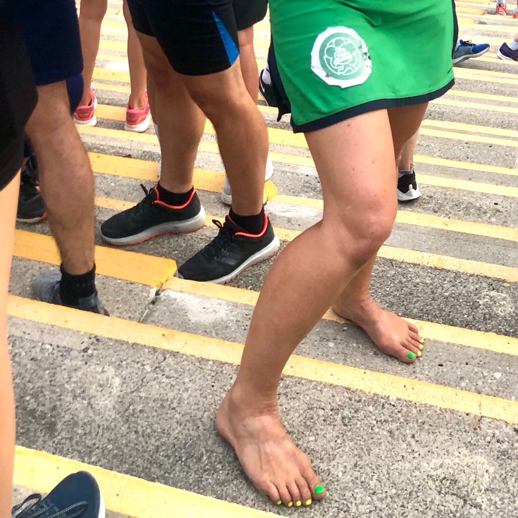 Und wieso gehe ich eigentlich davon aus, dass ich als Barfüsslerin einen top Asphalt präsentiert bekomme? Das war nämlich auf gesamten 5 km nicht der Fall. Zähne zusammenbeißen, mich verfluchen, Motivation der anderen mitnehmen und weiterlaufen.