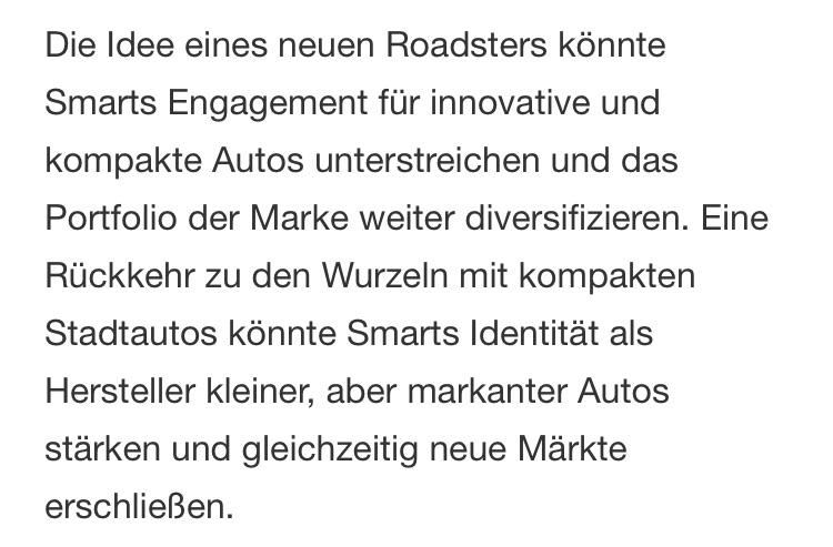 Juhuu, ein weiteres zweisitziges und sportliches Kleinfahrzeug kündigt sich an. Der elektrische Roadster ist noch nicht bestätigt, doch fehlt diese Nische weiterhin bei der Diversität der aktuellen Elektrofahrzeuge und wäre durchaus ein willkommenes Gegenkonzept bei der leider mittlerweile sehr großen SUV Auswahl.