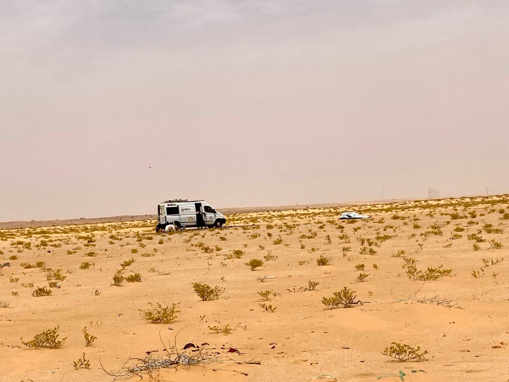 Wenig? Na, so ein „Hundestall“ wiegt schon einiges. Und die solare Ladekonditionen in der Sahara sind meisst sehr sandig – windig.