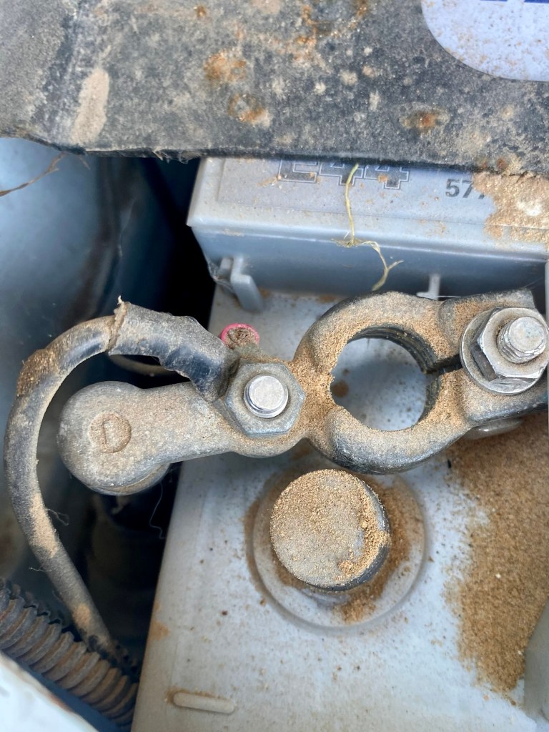Also der Griff zum Telefon – Jokerzeit. Die erste Diagnose: “Kurz mal den Pol an der 12V-Batterie bewegen – da ist wohl viel Sand dazwischen.” Klingt einfach. Zum Glück stand ich ja noch am Supercharger, und prompt kam ein netter Teslafahrer zur Hilfe. Sogar mit Anti-Stromschlag-Handschuhen! Notiz an mich: auch besorgen.