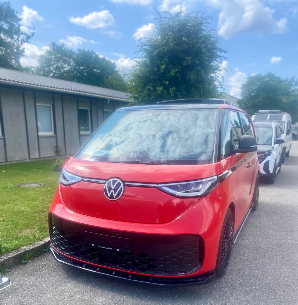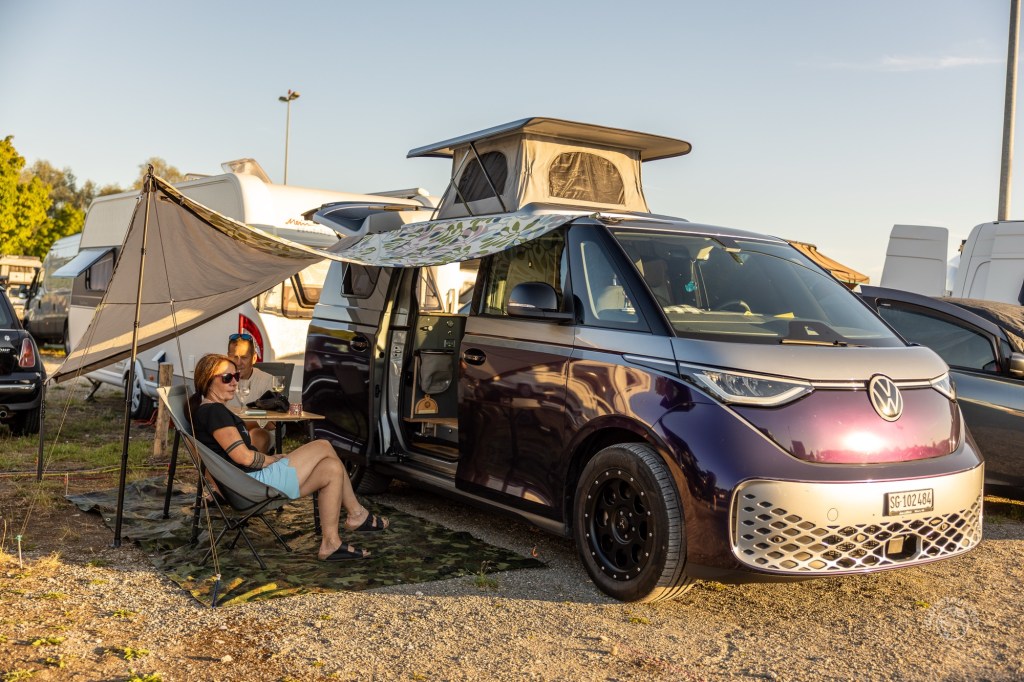 Bei Alpincamper stand der Maxus Delivery5 im eCamp für Besucher bereit. Ein spannendes Fahrzeug, das nicht nur von außen elektrifiziert glänzt – sondern auch im Inneren durch durchdachten Ausbau punktet. Die Beratungsgespräche fanden direkt am Stand statt – inklusive Blickfang: ein umgebauter ID.Buzz, der viele Besucherherzen höherschlagen ließ.