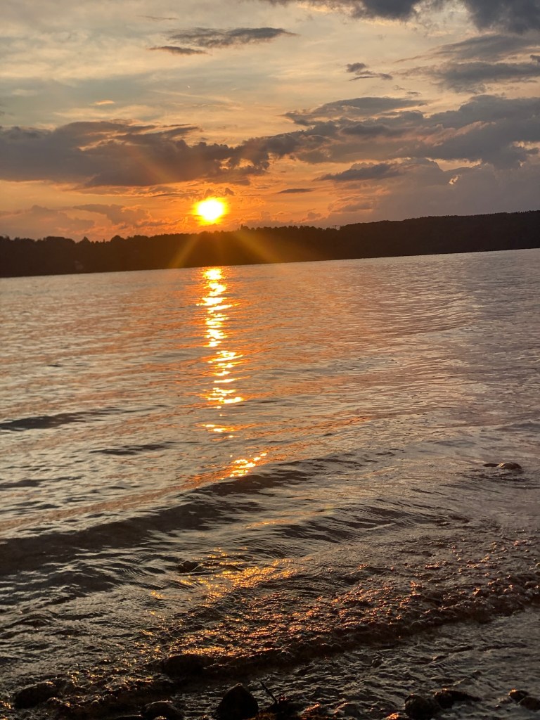 Durchnässt, aber erleichtert, kam ich zu den Hunden zurück. Schwimmen war nicht mehr drin – aber immerhin: eine Art Naturdusche und ein traumhafter Sonnenuntergang als Belohnung.