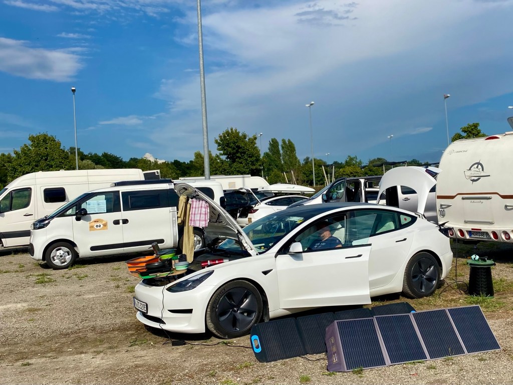 Gefühlt war das halbe eCamp im Raum, ergänzt um weitere eMobilisten, die sich für meine Reise interessierten und selbst mit dem Gedanken spielen, solarunterstützt elektrisch unterwegs zu sein. Es war natürlich trotzdem eine schöne Erfahrung – inspirierend, offen, wertschätzend.