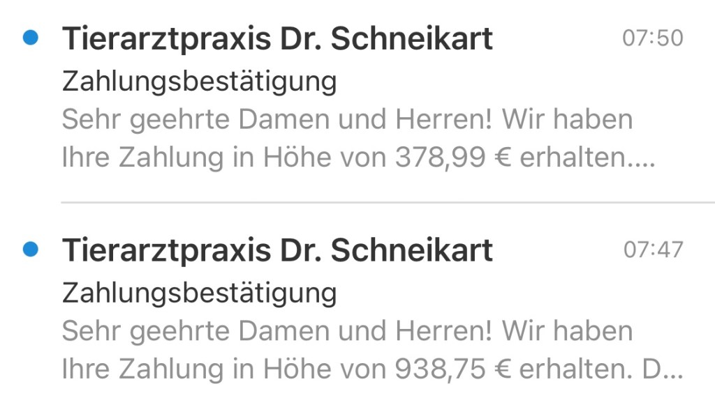 Noch am Vorabend hatte ich 200 Euro für den „Notfall“ der fehlenden Klammern bezahlt. Bis zum nächsten Morgen galt es dann, weitere 750 Euro für die nächste OP aufzutreiben. Das war nicht eingeplant, ich hatte das Geld nicht – und ein guter Freund ging am nächsten Vormittag für mich zur Bank.